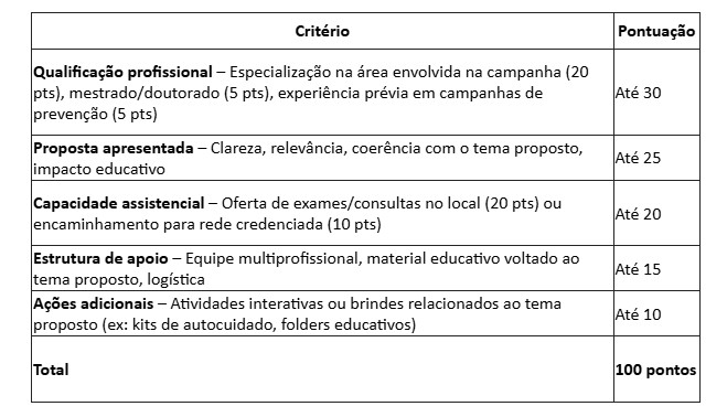 - Cada credenciado poderá propor atividade educativa (palestra, oficina, orientação) e/ou atividade assistencial (consultas/exames relacionados ao tema proposto).